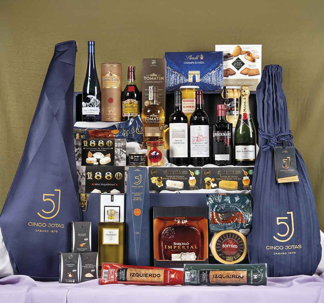 En esta cesta de Navidad nos encontramos, tal y como aparece en la descripción del producto, con un jamón ibérico de bellota 100% Jabugo 5J de SÁNCHEZ ROMERO CARVAJAL y con una paleta ibérica de bellota 100% Jabugo 5J de SÁNCHEZ ROMERO CARVAJAL.