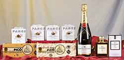 1 Estuche 280 grs. 4 box 70 grs. Pistachos caramelizados,almendras caramelizadas, avellanas caramelizadas y rocas suizas PANCRACIO